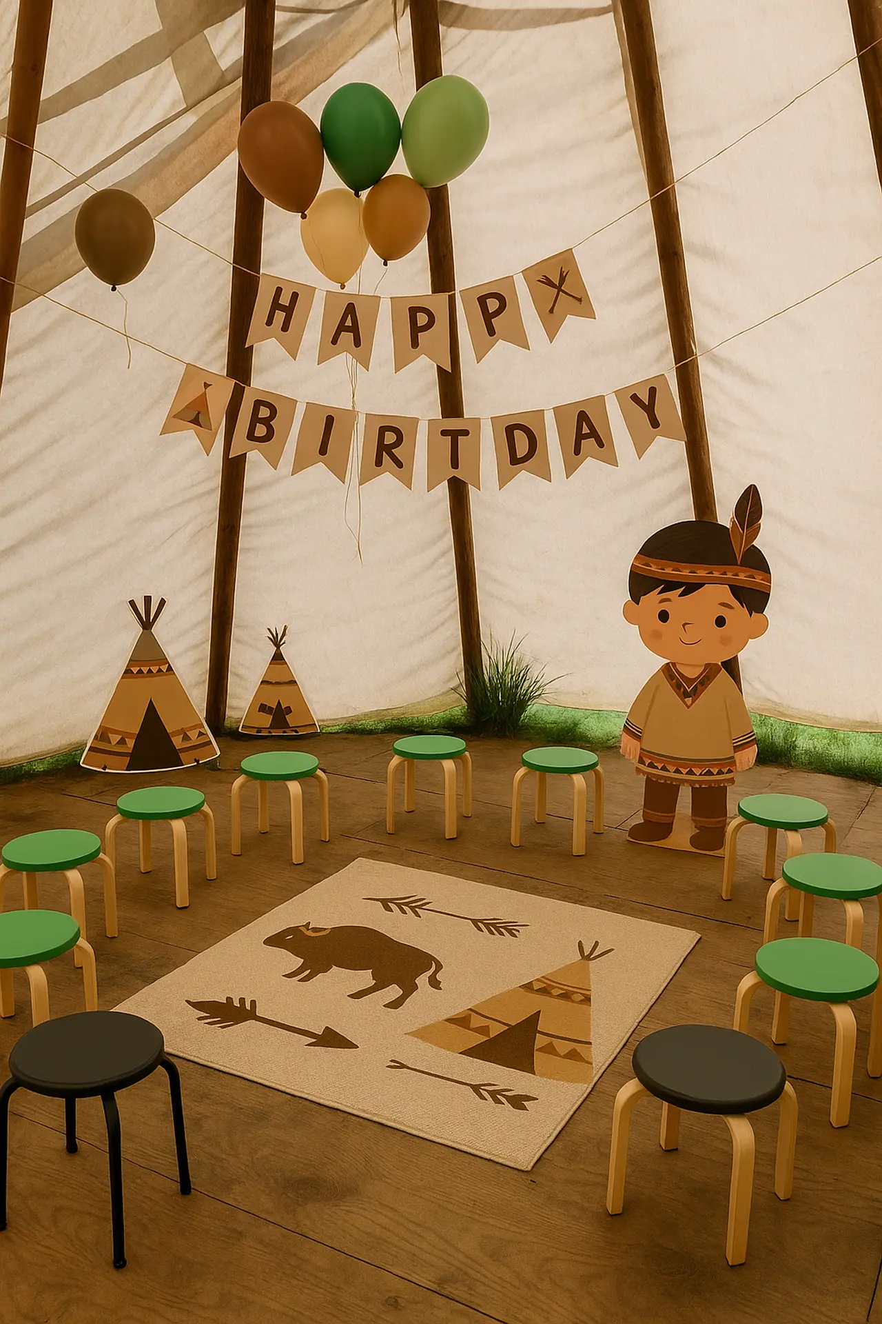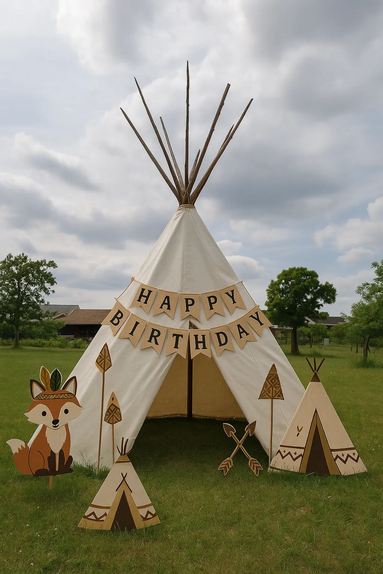 Ob kleine Häuptlinge oder große Geburtstagshelden – mit thematischer Deko wird unser Tippi zur idealen Location für Indianerpartys, Märchenabenteuer und vieles mehr.